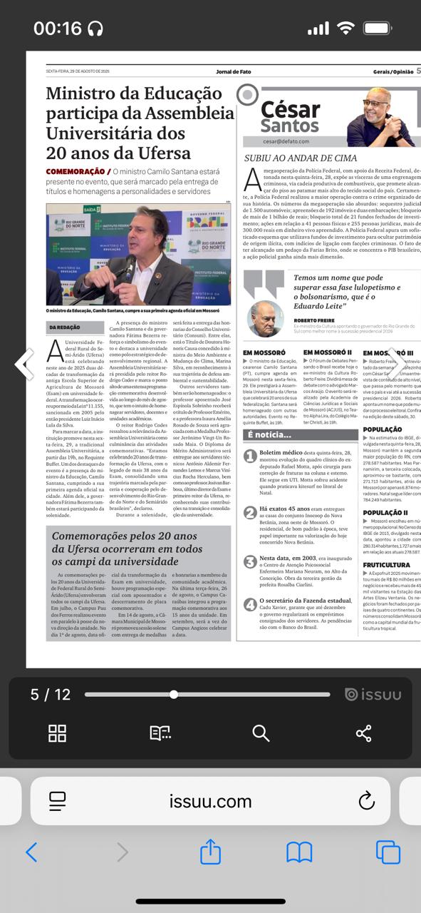 Gazeta do RN – Ufersa celebra 20 anos com presença do ministro da Educação Camilo Santana